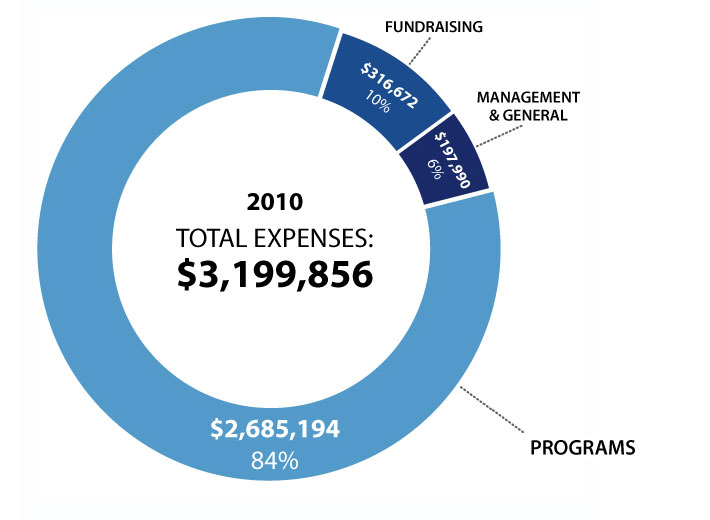 2010 Total Expenses: $3,199,856 Programs - $2,685,194 = 84% Public Awareness: