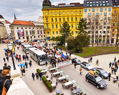Bare fire dager etter nedstyrtingen organiserte CCHR Tyskland og CCHR Østerrike en protestdemonstrasjon ved Den europeiske psykiatriforeningen (EPA)’s kongress i Wien i Østerrike. Det var et opptog med 400 aktivister som fulgte en svart begravelsesbil med en kiste og budskapet «Til minne om psykiatriens ofre». De distribuerte et flygeblad med tittelen «Selvmordsflygning etter psykofarmaka» som fortalte om farene ved psykofarmaka og forlangte at den tyske psykiateren Wolfgang Gaebel, president i EPA og leder av det samme psykiatriske sykehuset i Düsseldorf hvor Lubitz ble behandlet, besvarte spørsmålet: Var Lubitz under påvirkning av psykofarmaka da nedstyrtingen fant sted?