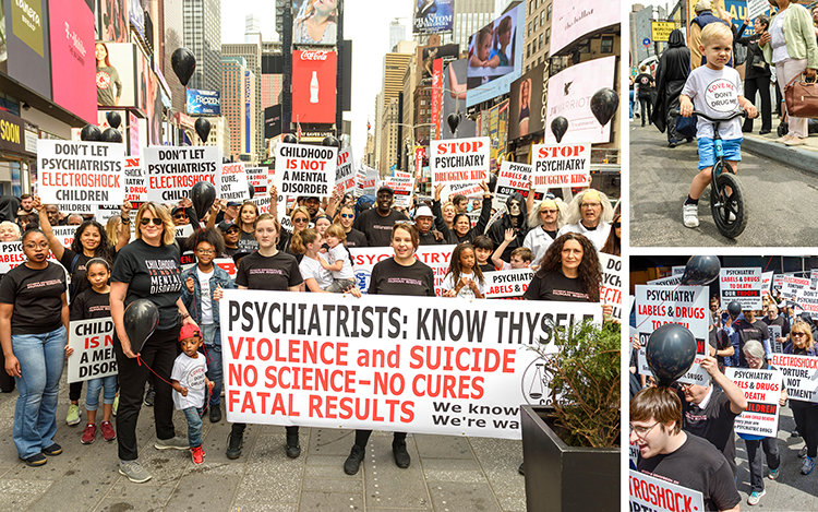 En CCHR-marsj og demonstrasjon protesterte mot psykiatriens bruk av elektrokonvulsiv terapi (ECT) – også kalt elektrosjokk-terapi – spesielt på småbarn og barn, på den årlige konferansen til Den amerikanske psykiatriforeningen (APA) i New York City. Mange tror at elektrosjokk – opp til 460 volt gjennom hjernen – ikke lenger eksisterer. Men de mer enn 25 foredragene og papirene som ble presentert om ECT på APA-konferansen begravde slike overbevisninger. USAs produsenter av elektrosjokk-apparater var to utstillere på APA-konferansen.