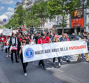 For å få de deltakende psykiaterne til å føle seg velkomne holdt CCHR Frankrike en protestmarsjsamling ved inngangsdøren til Nice Acropolis Kongressenter med skilt som forkynte: «Stopp psykiatriske overgrep» og «Psykiatri: Barbari. Elektrosjokk. Det er nok.»